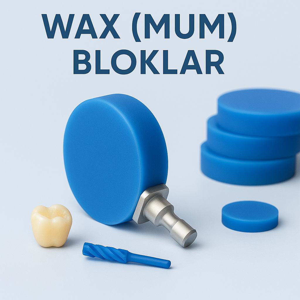 WAX (Mum) Bloklar – Hassas Modelleme ve Restorasyon Hazırlığında Mükemmel Çözüm WAX (Mum) bloklar, diş laboratuvarlarında modelleme, prova ve tasarım aşamalarında kullanılan en temel CAD/CAM malzemelerinden biridir. Yüksek kaliteli balmumu karışımından üretilen bu bloklar, freze makineleriyle uyumlu yapısı sayesinde kusursuz diş anatomisi modellemelerinde maksimum hassasiyet